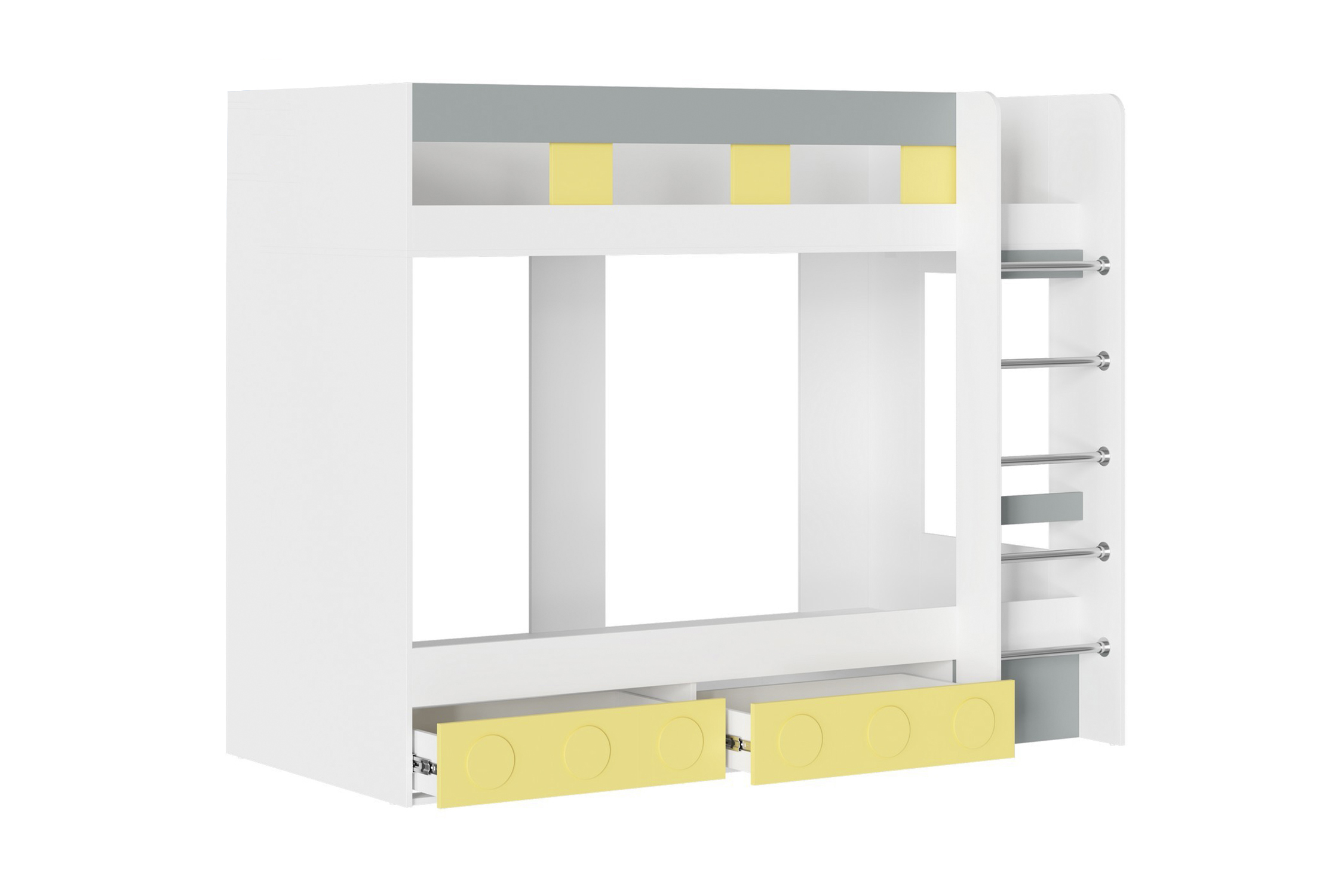На нижнем ярусе кровати рекомендуется использовать пружинный или беспружинный матрас. На верхней кровати используется беспружинный матрас высотой до 10 см. Высота бортика-ограничителя матраса на верхнем ярусе 10.6 см, на нижнем ярусе -13.8 см. |