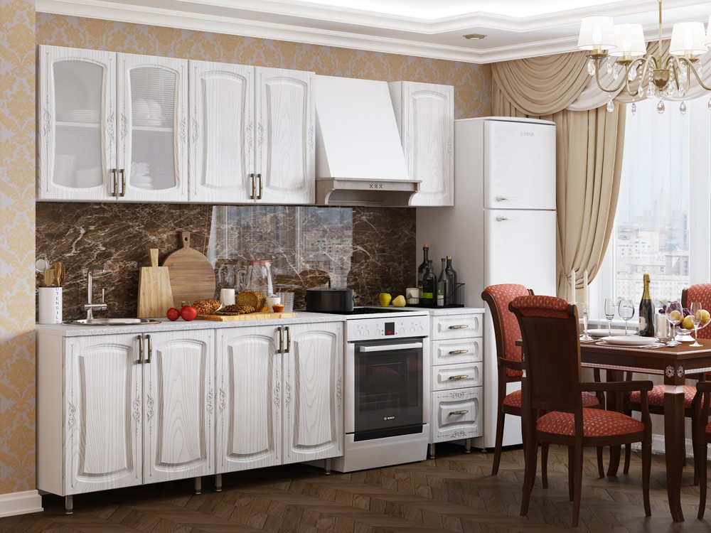 Кухня Белла выполнена в классическом стиле, а, как известно, классика актуальна всегда. Эксклюзивная фрезеровка на фасадах и оригинальные ручки подчеркивают все изящество данной кухни.