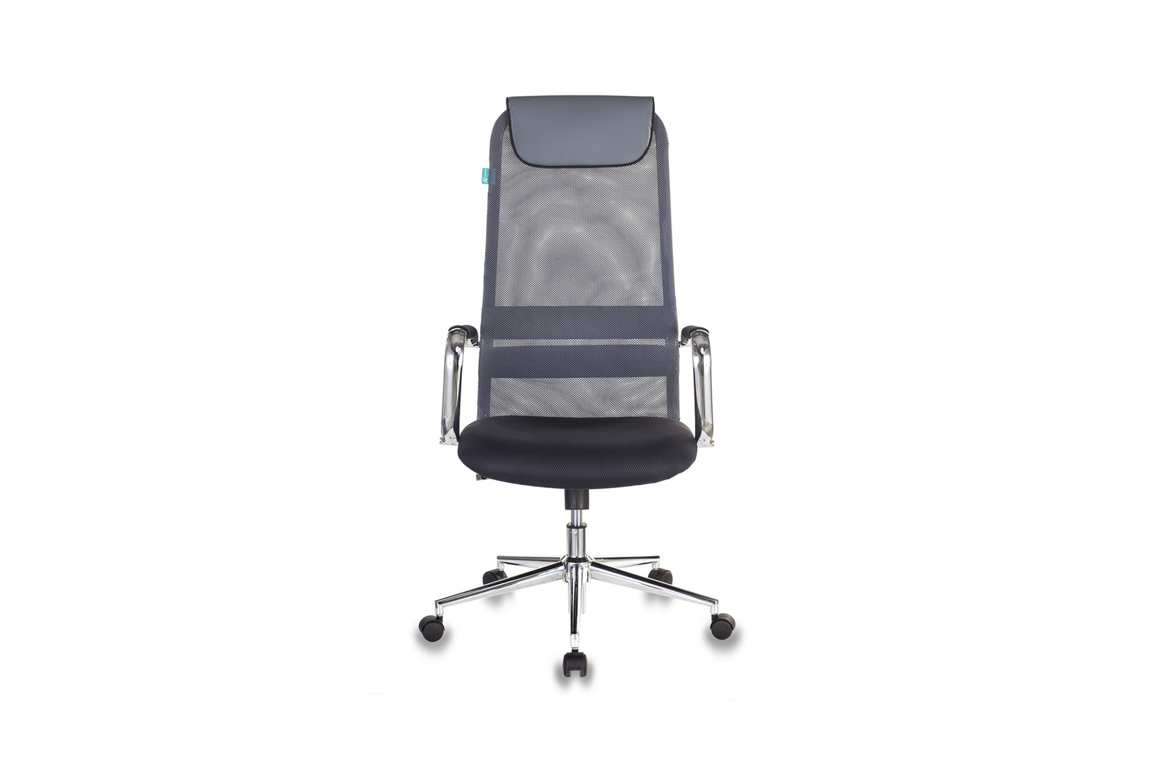Диаметр колес - 5 см. Высота сиденья - 57.5 см. Высота с подлокотниками - 80.5 см. Ширина сиденья - 53.5 см. Глубина сиденья - 48.5 см. Материал колес - с накладкой PU. Материал обивки - спинка: сетчатая ткань / искусственная кожа (подголовник) сиденье: сетчатая ткань. Механизм качания с регулировкой под вес и фиксацией в вертикальном положении. Подлокотники металлические хромированные с накладками из ткани. Крестовина - хромированная.