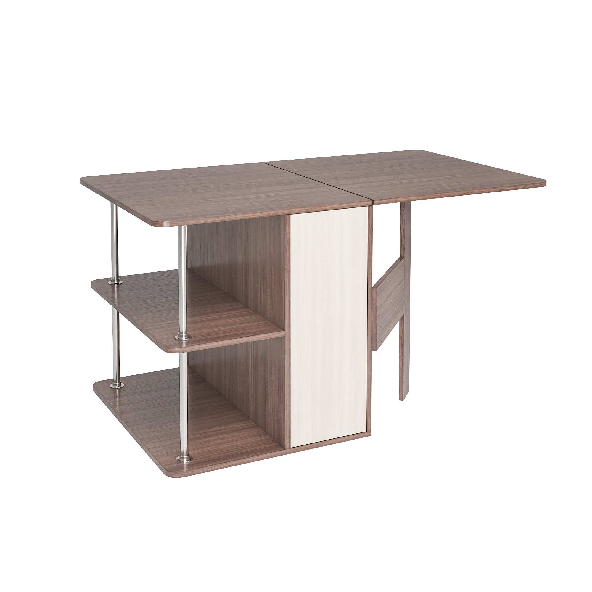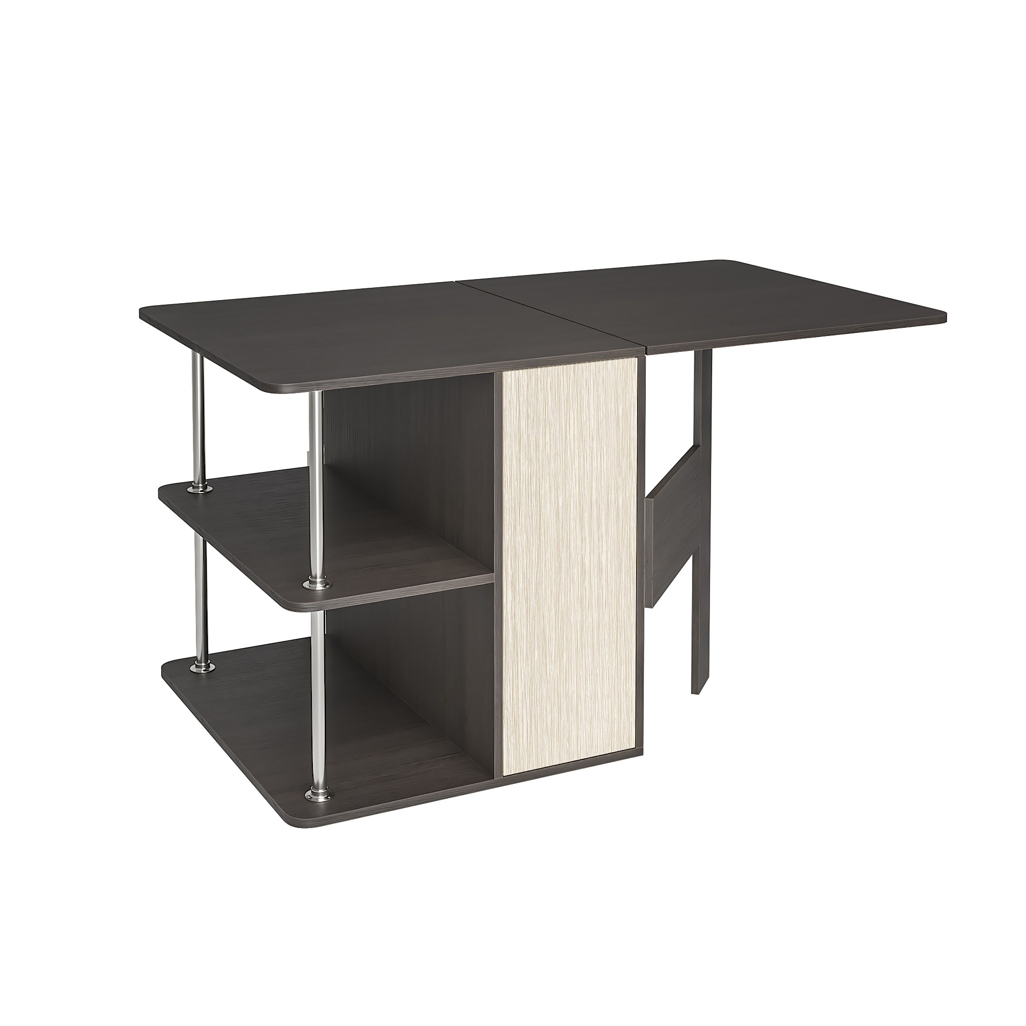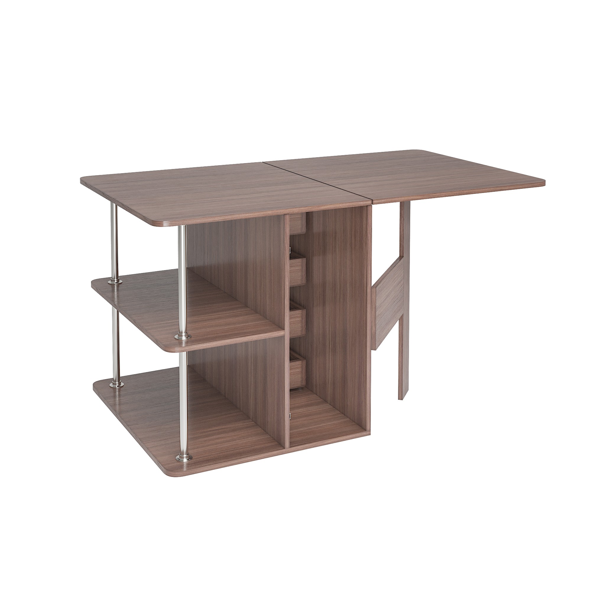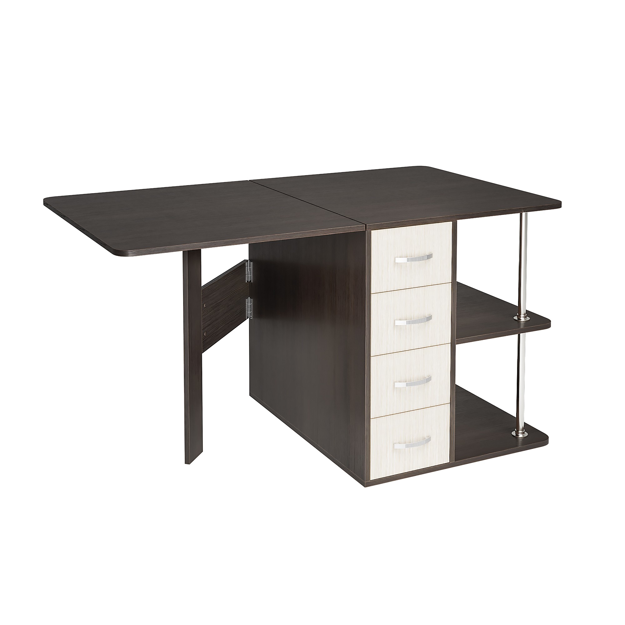 С одной стороны стола находятся ящики для хранения, с другой – распашная створка, которую фиксирует "толкатель" (открывается при нажатии)