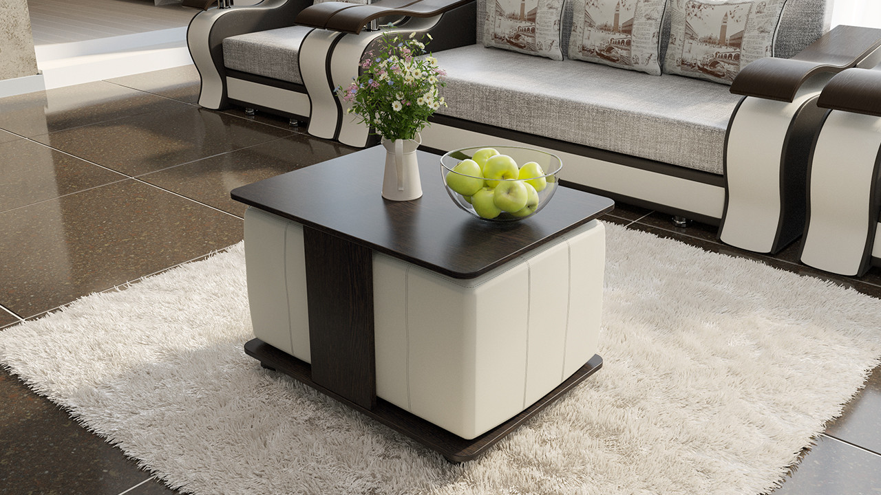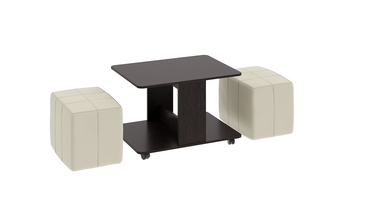 Стол Журнальный с Пуфиками «Капри» Венге Цаво/Кож.Зам Светлый/Ш-600× Д-800 × В-500 мм